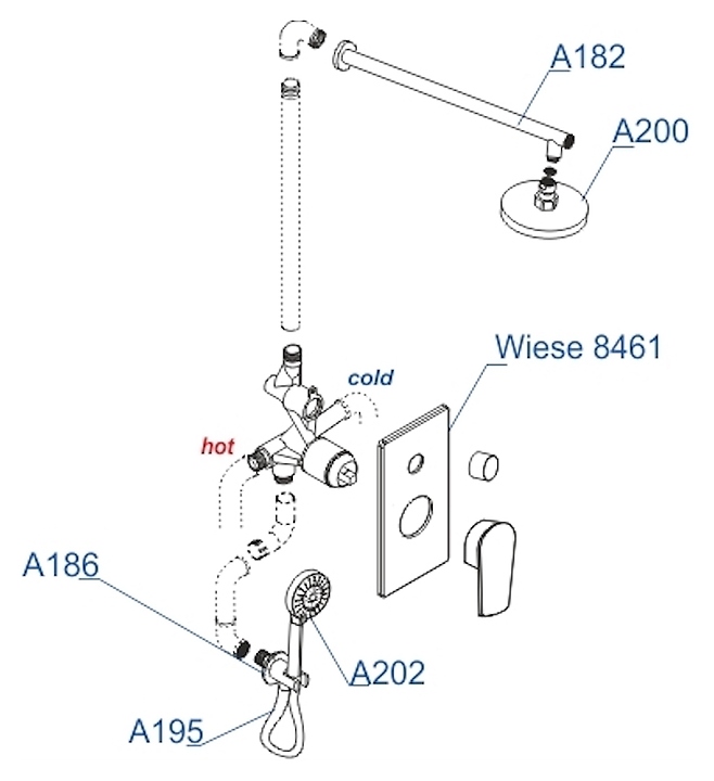Комплект душевой встраиваемый Wasserkraft A84202 оружейная сталь