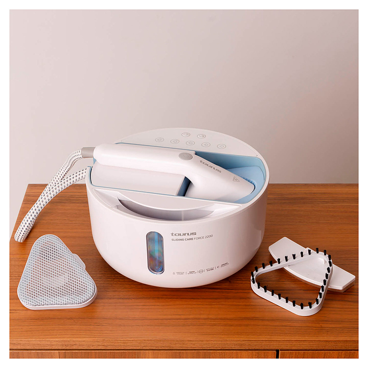 Отпариватель Taurus Sliding Care Force 2200 используется в гостиницах, ателье, а также домашних условиях для разглаживания складок на одежде, белье и шторах из различных тканей, а также для термической дезинфекции изделий с помощью струи горячего пара. Модель оснащена электронагревателем с насосом, кабелем питания с вилкой, термоизолированной рукояткой и сенсорной панелью управления. Корпусы прибора и утюжка выполнены из термостойкого ударопрочного пластика белого цвета, подошва утюжка – из металла с тефлоновым покрытием. Комплектация:
