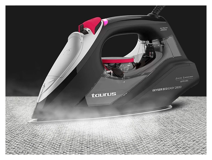 Утюг Taurus Geyser Eco Easy 2800 используется в гостиницах, ателье, а также домашних условиях для разглаживания складок на одежде, белье и шторах из различных тканей, а также для термической дезинфекции изделий с помощью струи горячего пара. Модель оснащена электронагревателем, кабелем питания с вилкой, подошвой в форме капли с большим количеством паровых отверстий, рукояткой обтекаемой формы и электромеханическим управлением. Корпус выполнен из термостойкого ударопрочного пластика в комбинации черного и серебристого цветов. Особенности: