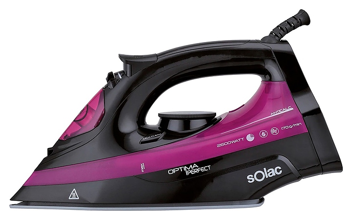 Утюг Solac Optima Perfect PV2114 используется в гостиницах, ателье, а также домашних условиях для разглаживания складок на одежде, белье и шторах из различных тканей, а также для термической дезинфекции изделий с помощью струи горячего пара. Модель оснащена электронагревателем, кабелем питания с вилкой, подошвой в форме капли с большим количеством паровых отверстий, рукояткой обтекаемой формы и электромеханическим управлением. Корпус выполнен из термостойкого ударопрочного пластика в комбинации черного и сиреневого цветов. Особенности: