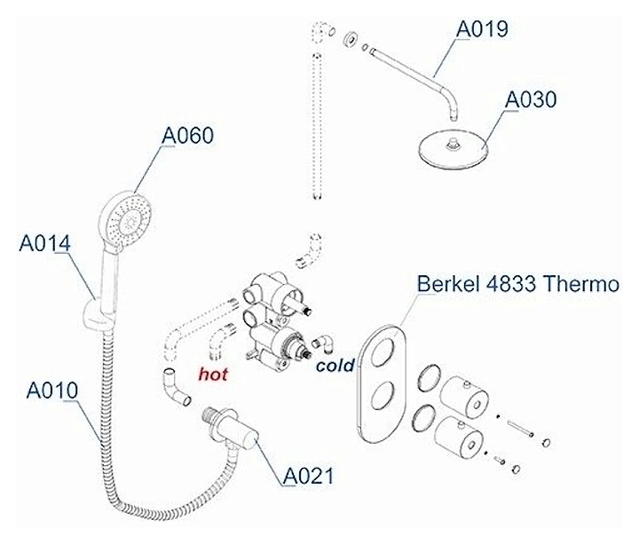 Комплект душевой встраиваемый термостатический Wasserkraft A16030 Thermo хром
