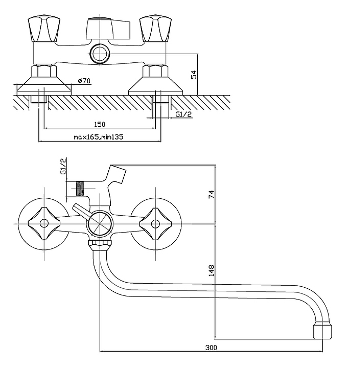 Смеситель для ванны и душа Agger Retro-S A1822200