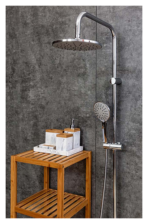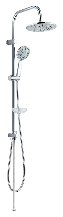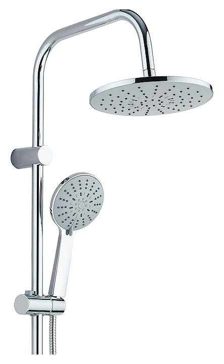 Душевая стойка Agger Breeze A0193500 предназначена для использования в ванных помещениях. Модель оснащена круглыми верхним душем и ручной лейкой. Силиконовые форсунки отличаются легкой очисткой от известкового налета. Шланг выполнен в металлической оплетке, гибкие шланги - из нержавеющей стали. В комплект поставки входят стойка, верхний душ, ручной душ, шланг и набор для подключения. Смеситель в комплект поставки не входит. Особенности: