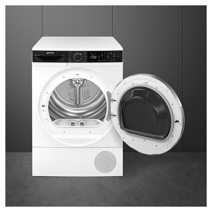 Сушильная машина Smeg DT393RU используется в квартирах и частных домах для сушки белья, ткани и одежды. Легкий доступ к фильтрам упрощает обслуживание. Модель оснащена электронной панелью управления с индикацией программ на русском языке. Барабан выполнен из нержавеющей стали. Возможно комбинирование со стиральной машиной Smeg WM3T04RU при помощи специального аксессуара. Особенности: