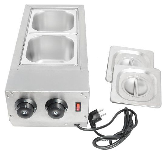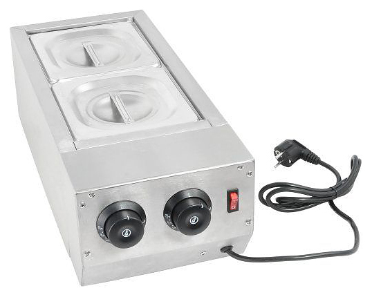 Подогреватель EKSI HW-22 используется на предприятиях общественного питания и торговли для темперирования и поддержания в горячем виде шоколада. Модель оснащена 2 емкостями для работы с различными видами шоколада одновременно и 2 термостами независимой регулировки температуры. Корпус выполнен из нержавеющей стали. В комплект поставки входят 2 GN 1/6 глубиной 100 мм с крышками. Дополнительные характеристики: