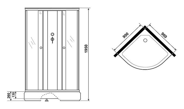 Душевая кабина Niagara Promo P90/26/MT/BK предназначена для использования в ванных комнатах. Благодаря угловой конструкции и поддону в форме четверти круга модель можно вписать даже в ванные комнаты небольшой площади. Кабина оснащена 2-секционными раздвижными дверцами. Антискользящее покрытие гарантирует комфорт и безопасность во время водных процедур. Профиль выполнен из алюминия, полотно двери - из стекла, поддон - из прочного ABS-пластика. Особенности: