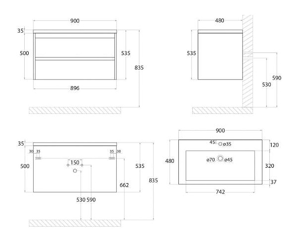 Тумба под раковину Art&Max Family-M-900-2C-SO-HC выполнена в современном стиле и прекрасно впишется в интерьер любой ванной комнаты. Благодаря подвесной конструкции модель не занимает много места и облегчает уборку. Модель оснащена 2 выдвижными ящиками с доводчиками скрытого монтажа и системой плавного закрывания. Фасад выполнен из ЛДСП. Тумба используется с раковиной AM-LAV-900-MR-A. Раковина и смеситель в комплект поставки не входят. Дополнительные характеристики: