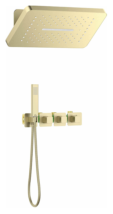 Душевой комплект TIMO Petruma SX-5249/17SM используется в ванных комнатах. Модель оснащена прямоугольными верхним душем и ручной лейкой. Термостат гарантирует подачу воды заданной температуры, что исключает ожоги. Изделие выполнено из латуни, которая отличается прочностью, долговечностью и устойчивостью к перепадам температуры. Комплектация: