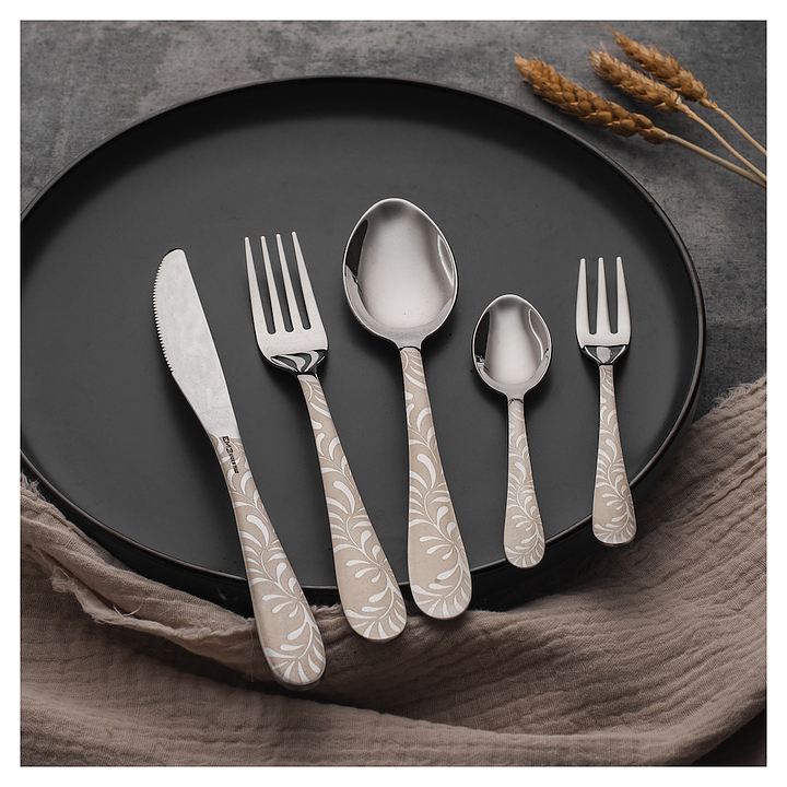 Набор столовых приборов EME Segno Mediterraneo P13SESE/LME используется в процессе трапезы на предприятиях общественного питания и в домашних условиях. Оригинальный цветочный декор наносится с помощью лазерной гравировки. Набор состоит из 24 предметов. Приборы изготовлены из нержавеющей стали 18/10 с глянцевой поверхностью и могут использоваться как для праздничной, так и для повседневной сервировки стола. В комлект поставки входят 6 столовых ложек, 6 вилок, 6 столовых ножей и 6 чайных ложек с цветочным декором. Особенности: