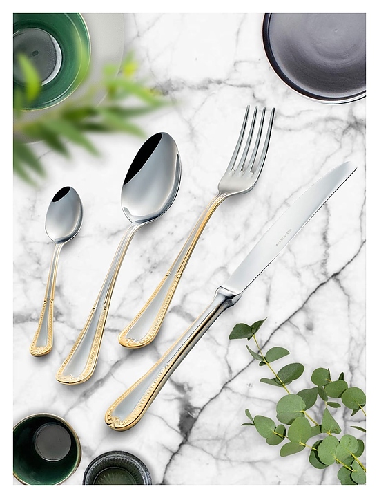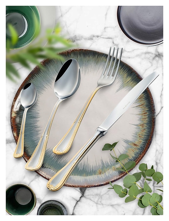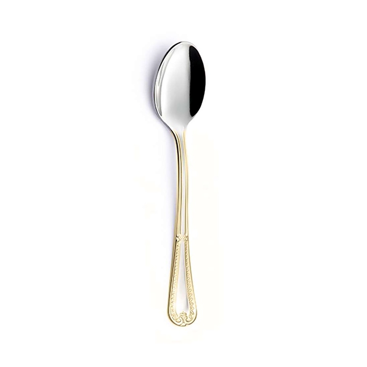Набор кофейных ложек EME Firenze Gold Decor C09FI/OR из коллекции Firenze Oro используется на предприятиях общественного питания и в домашних условиях для сервировки стола во время торжеств. Приборы изготовлены из нержавеющей стали 18/10 с глянцевой поверхностью и позолоченной окантовкой, нанесенной вручную. В комплект поставки входят 6 кофейных ложек. Особенности: