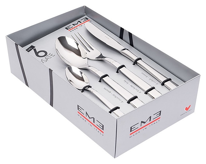 Набор столовых приборов EME Lux P16BELU/10 используется на предприятиях общественного питания и в домашних условиях. Благодаря сдержанному декору коллекция сочетается с классическим фарфором и современной посудой в стиле минимализм. Приборы изготовлены из нержавеющей стали 18/10 с глянцевой поверхностью и могут использоваться как для праздничной, так и для повседневной сервировки стола. В комплект поставки входят 4 столовых ложки, 4 вилки, 4 столовых ножа и 4 чайных ложки. Особенности: