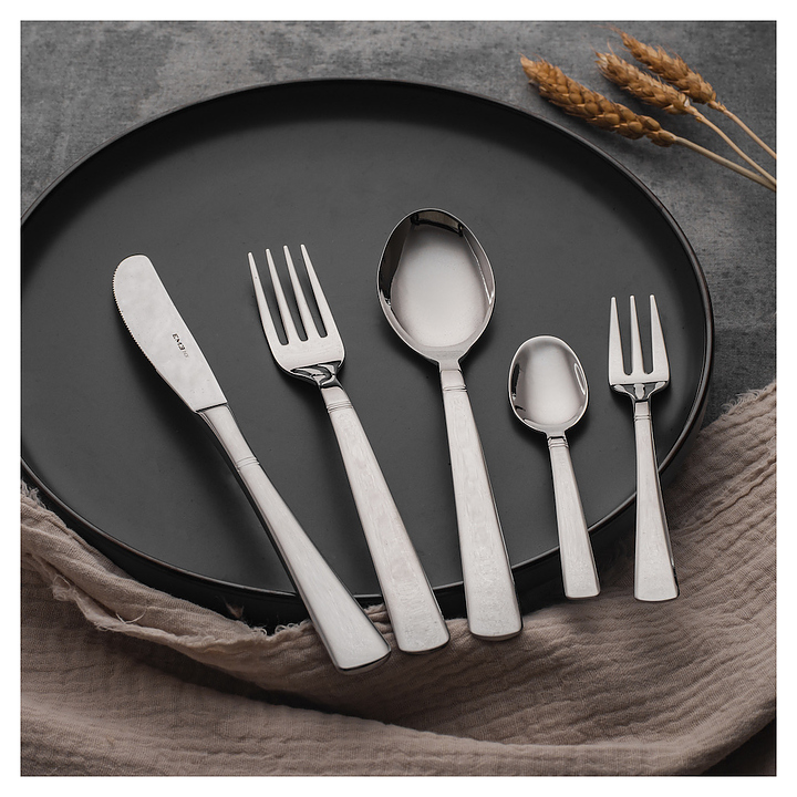 Набор столовых приборов EME Lux CP30ELU/10 используется на предприятиях общественного питания и в домашних условиях. Благодаря сдержанному декору коллекция сочетается с классическим фарфором и современной посудой в стиле минимализм. Приборы изготовлены из нержавеющей стали 18/10 с глянцевой поверхностью и могут использоваться как для праздничной, так и для повседневной сервировки стола. В комплект поставки входят 6 столовых ложек, 6 вилок, 6 столовых ножей, 6 чайных ложек и 6 десертных вилок. Особенности: