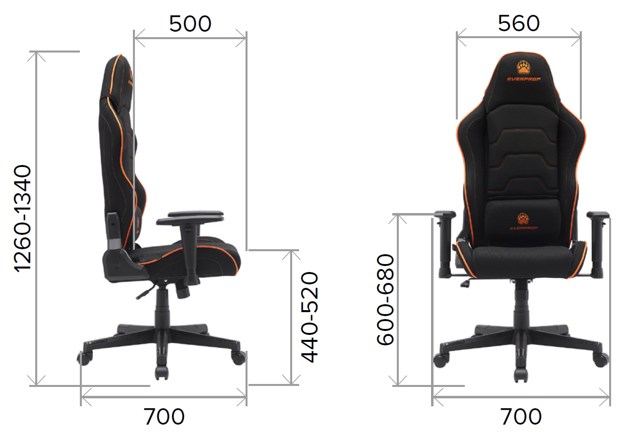 Кресло геймерское Everprof Panther ткань, черное с оранжевым