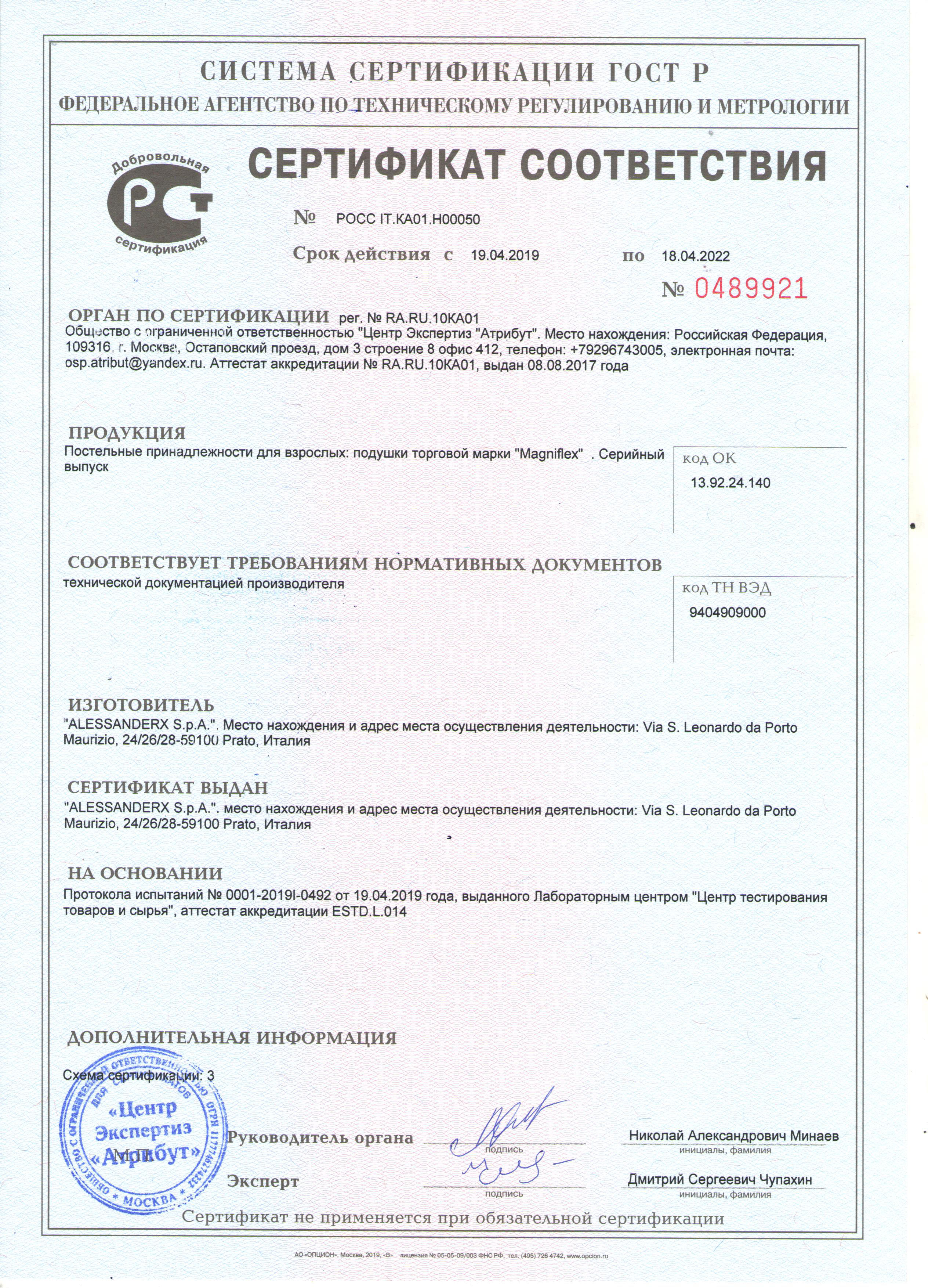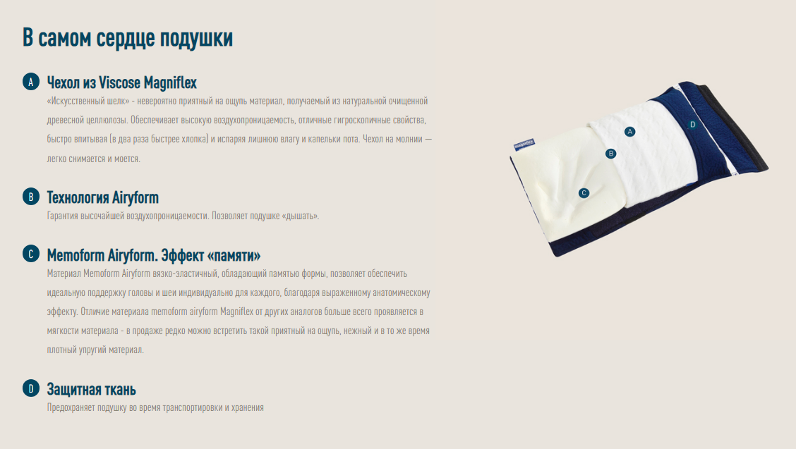 Итальянская компания Magniflex производит ортопедические матрасы и подушки. В процессе создания матрасов используется инновационное оборудование, новейшие научные достижения, в том числе передовые космические технологии НАСА, а также электронные системы сборки. ENTERO - официальный партнёр