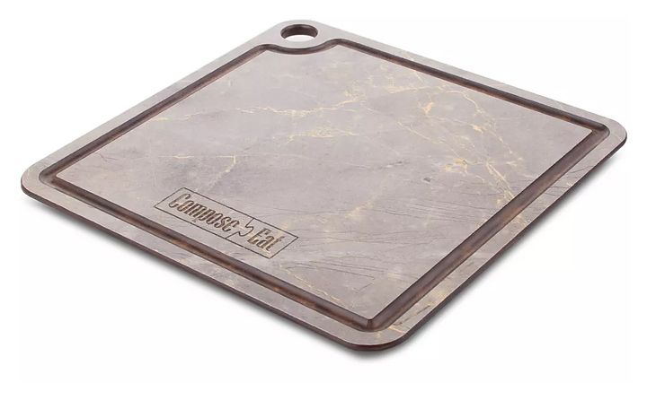 Сервировочная доска ComposeEat PGM1743118OA6 выполнена из бумажного композитного материала, сохраняющего целостность при падении, ударах и механической нагрузке, устойчивого к резким перепадам температур, не подверженному деформации, выцветанию, сколам, трещинам и механическим повреждениям. Модель оснащена желобом для слива жидкости, отверстием для подвешивания и нескользящими силиконовыми ножками. Особенности: