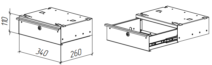 Ящик кассира MAGMA КР200.ЯК.00.000 используется совместно с кассовыми боксами на предприятиях торговли для хранения документов, канцелярии и других принадлежностей. Модель оснащена замком. Аксессуар монтируется в тумбу под накопитель или стол транспортера. Корпус выполнен из листовой стали. Характеристики: