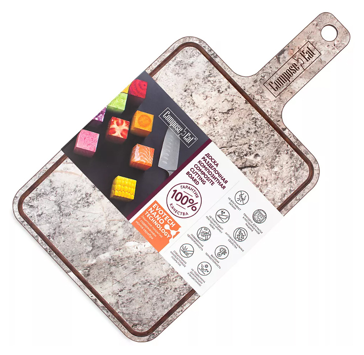 Доска разделочная ComposeEat DRRJ33183031OA4 33х18 см, с ручкой, мрамор серый