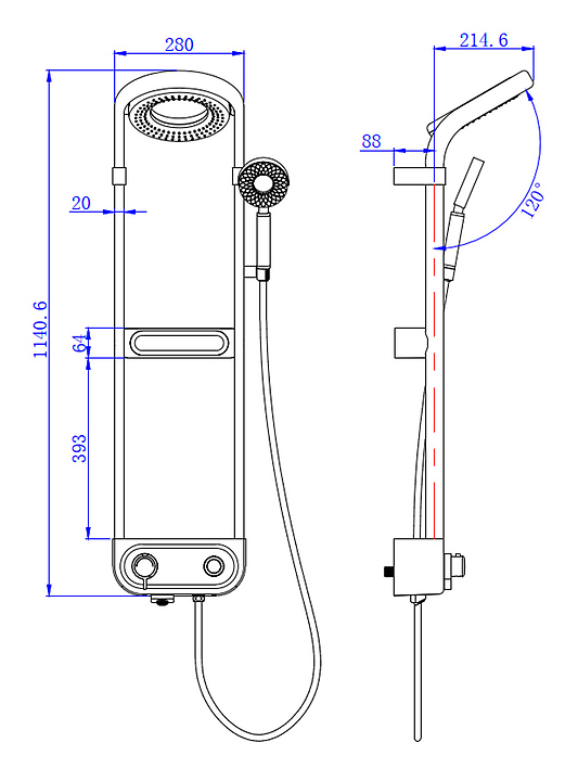 Душевая стойка AQUAme AQM8004B предназначена для использования в ванных помещениях. Модель оснащена круглыми верхним душем и ручной лейкой. Термостатический картридж обеспечивает подачу воды заданной температуры, что исключает ожоги. В комплект поставки входят верхний душ, ручной душ, термостат, штанга и держатель для душа. Особенности: