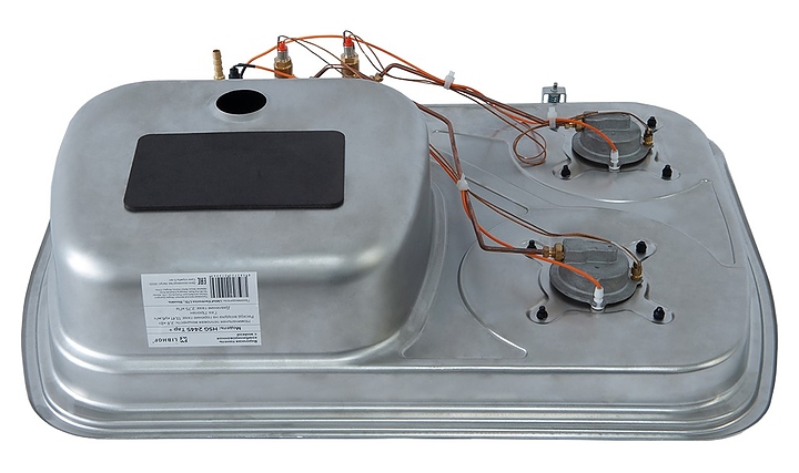 Газовая варочная панель Libhof HSG 2445 Tap+ предназначена для приготовления большого ассортимента блюд в домашних условиях, а также на кухне автодома, кемпера или яхты. Модель оснащена 2 конфорками, 2 решетками, 2 поворотными переключателями, мойкой, смесителем и откидной крышкой. Корпус и мойка выполнены нержавеющей стали, решетка – из чугуна, крышка - из черного закаленного стекла. В комплект поставки входит монтажный набор для мойки и плиты. Особенности: