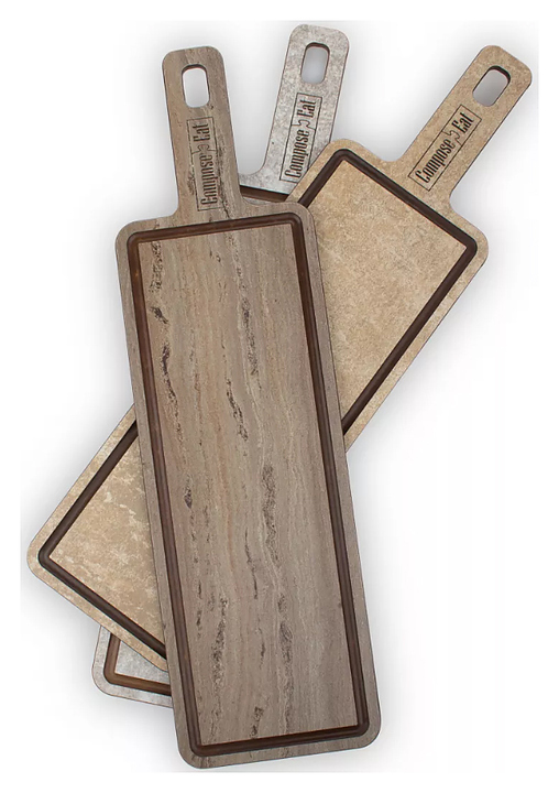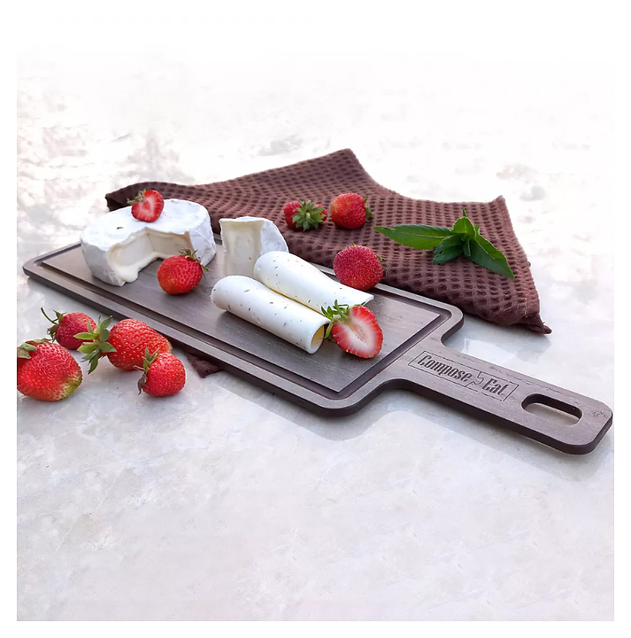 Сервировочная доска ComposeEat DSJ42120406KL6 выполнена из бумажного композитного материала, сохраняющего целостность при падении, ударах и механической нагрузке, устойчивого к резким перепадам температур, не подверженному деформации, выцветанию, сколам, трещинам и механическим повреждениям. Модель оснащена желобом для слива жидкости, ручкой с отверстием для подвешивания и нескользящими силиконовыми ножками. Особенности: