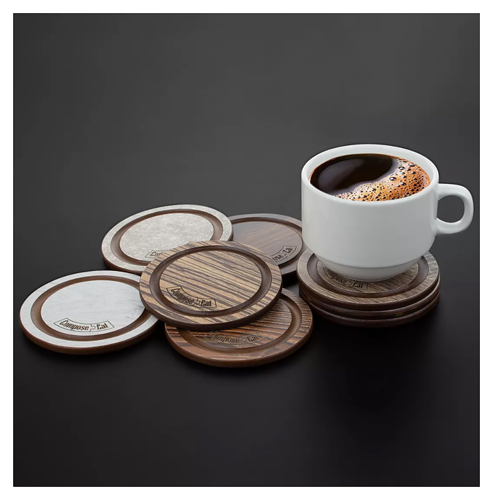 Подставка под кружку ComposeEat BD950634KL6 Бирдекель выполнена из бумажного композитного материала, сохраняющего целостность при падении, ударах и механической нагрузке, устойчивого к резким перепадам температур, не подверженному деформации, выцветанию, сколам, трещинам и механическим повреждениям. Модель оснащена желобом для слива жидкости. Особенности: