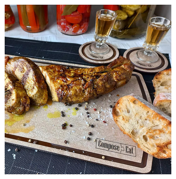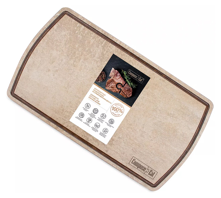 Сервировочная доска ComposeEat DSJ37210433KL6 выполнена из бумажного композитного материала, сохраняющего целостность при падении, ударах и механической нагрузке, устойчивого к резким перепадам температур, не подверженному деформации, выцветанию, сколам, трещинам и механическим повреждениям. Модель оснащена желобом для слива жидкости и нескользящими силиконовыми ножками. Особенности: