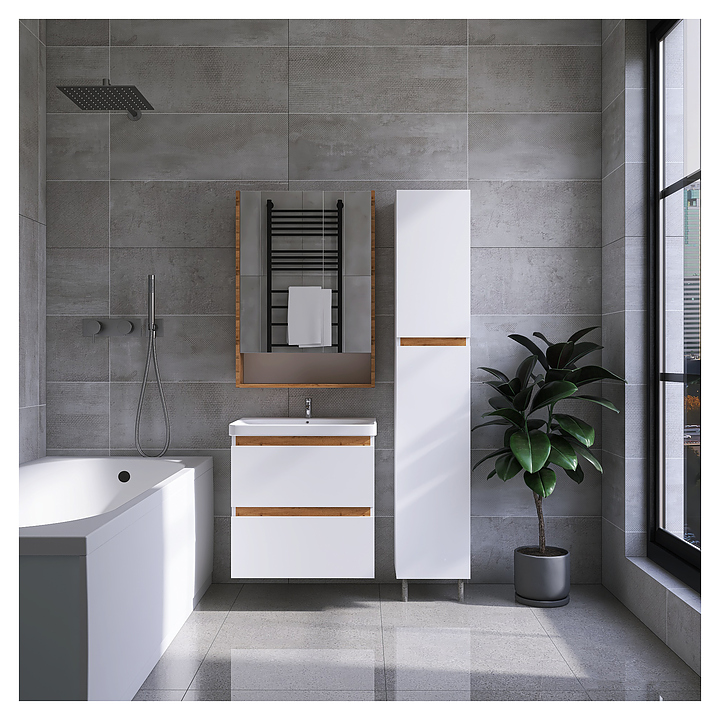 Тумба подвесная под раковину VIANT "Мальта" COMO 60 белая, дуб