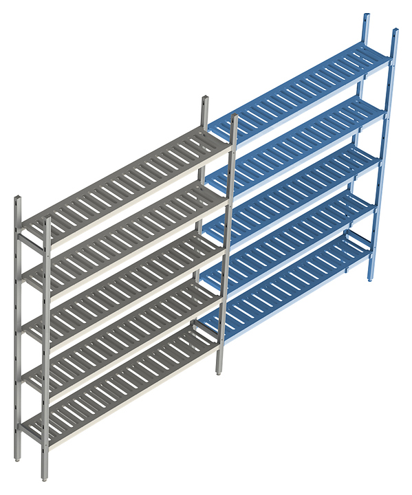 Комплект стеллажей POLAIR используется совместно с камерой КХН-8,81 предназначен для выкладки и хранения продукции в холодильных и морозильных камерах, на кухне, на кухне, местах общего хранения в магазинах, супермаркетах и на предприятиях общественного питания и торговли. Стеллажи оснащены 5 регулируемыми по высоте полками-решетками и ножками. Каркас выполнен из анодированного алюминиевого профиля, полки - из армированного полипропилена, ножки - из прочного композитного материала. В комплект поставки входят 3 стеллажа POLAIR LOAD.ME POLY: 18AL.5PP40.11B, 18AL.5PP40.11E и 18AL.5PP40.12C. Особенности: