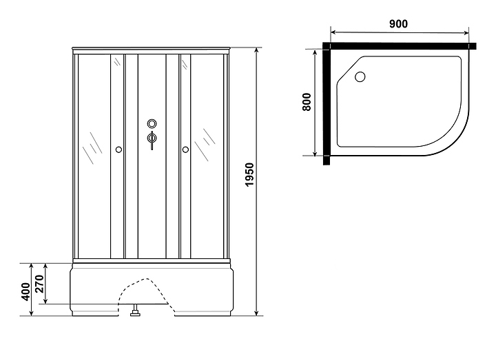 Кабина душевая Niagara Promo P90/80/40L/MT/BK 90х80х195 см, левая