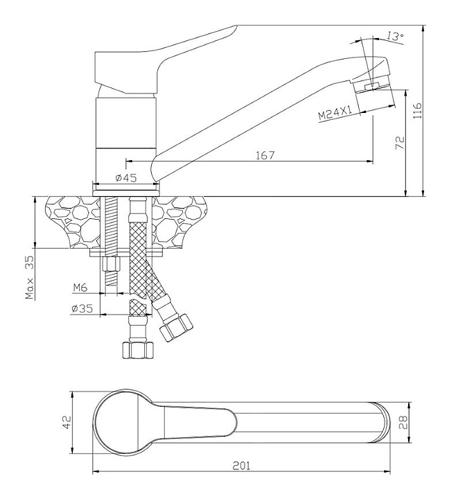 Смеситель для раковины OLIVE'S IBIZA 19110IB предназначен для подачи горячей и холодной воды в ванных помещениях. Однорычажное управление обеспечивает контроль и точность при выборе напора и температуры воды. Изделие выполнено из латуни, отличающейся прочностью, долговечностью и устойчивостью к перепадам температуры. Дополнительные характеристики: