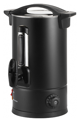 Кипятильник заливного типа (автономный) Enigma VIC-WBK12BLACK предназначен для непрерывного нагрева воды и последующего поддержания ее в горячем состоянии на предприятиях общественного питания и торговли. Модель оснащена терморегулятором и съемным ТЭНом. Цельный корпус изготовлен из нержавеющей стали 304, кран для розлива - из пищевой нержавеющей стали. Особенности: