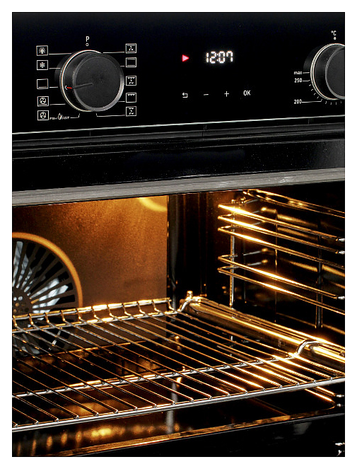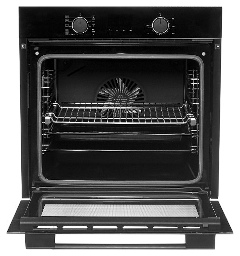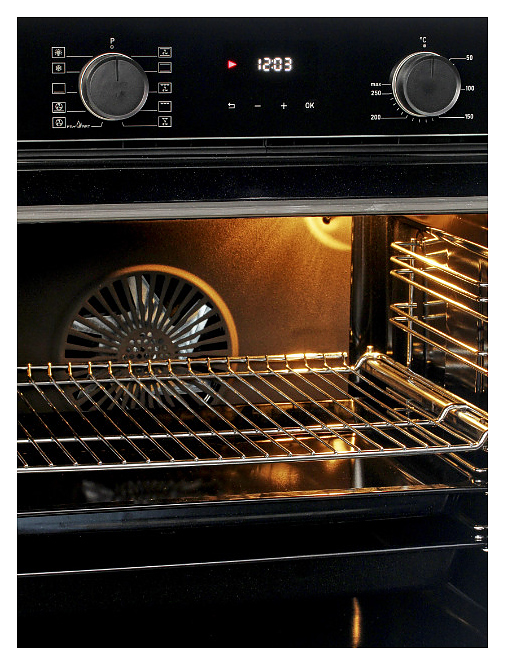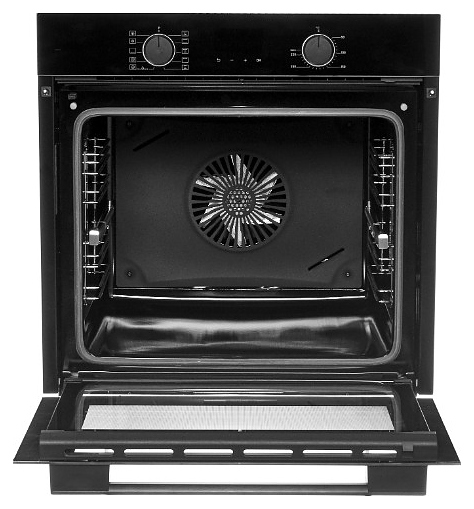 Электрический духовой шкаф Jacky's JO EN7638 предназначен для приготовления большого ассортимента блюд в домашних условиях. Модель оснащена расположенными в задней стенке вентилятором и кольцевым нагревательным элементом, верхним и нижним нагревательными элементами, верхним грилем, 2 съемными стойками с 5 уровнями направляющих для противней, откидной дверью со смотровым окном, горизонтальной рукояткой, электромеханической панелью управления с 2 круглыми поворотными переключателями, сенсорными клавишами и светодиодным цифровым дисплеем с индикацией белого цвета. Корпус выполнен из высококачественной стали с покрытием фронта черного цвета и полным остеклением фронтальных панелей без винтового крепежа стеклом Schott Seran (Германия), направляющие и решетка с хромированным покрытием, фурнитура – из металла с черной матовой поверхностью. В комплект поставки входят 2 противня: стандартный и глубокий, решетка для гриля и инструкция по эксплуатации. Особенности: