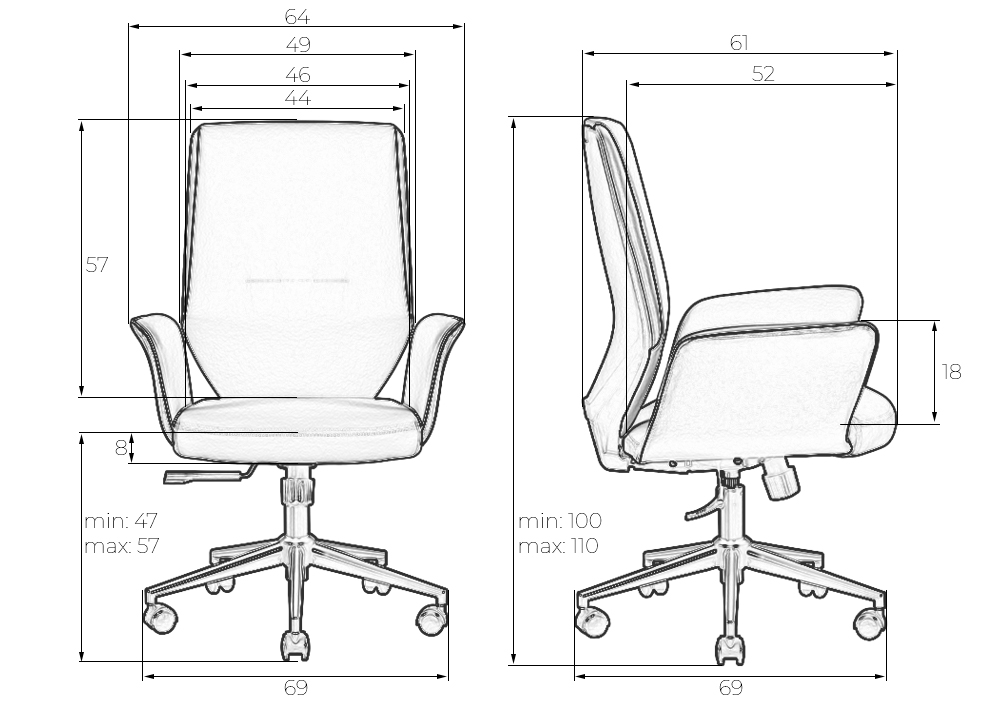 • Высота подлокотников: 180 мм
