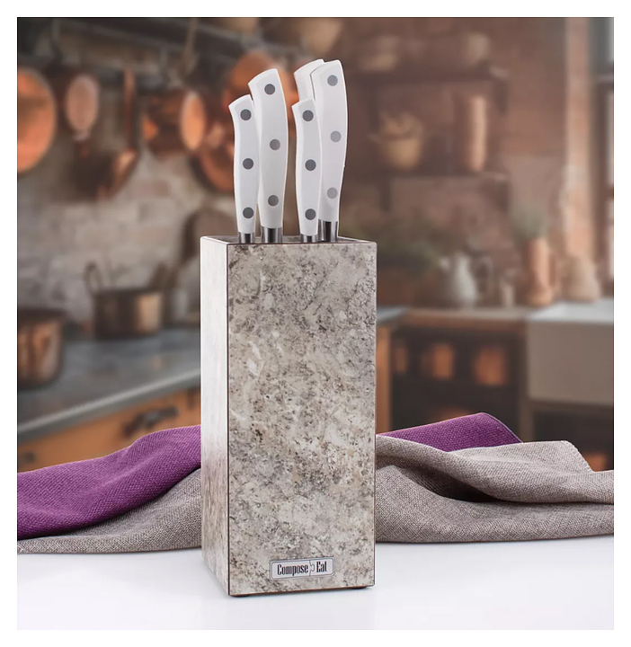 Подставка для ножей ComposeEat PDN103031OA4 10х10х23 см, мрамор серый
