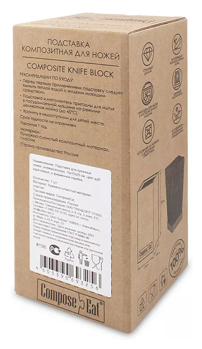Подставка ComposeEat PDN104035OA4 предназначена для хранения кухонных ножей и ножниц на предприятиях общественного питания и торговли, в частных домах и квартирах. Модель оснащена ножками и дренажным отверстием. Корпус выполнен из бумажного композитного материала, наполнитель - из пластика. Особенности: