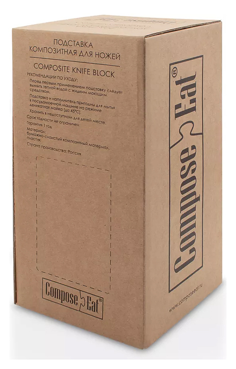Подставка ComposeEat PDN120403KL6 предназначена для хранения кухонных ножей и ножниц на предприятиях общественного питания и торговли, в частных домах и квартирах. Модель оснащена ножками и дренажным отверстием. Корпус выполнен из бумажного композитного материала, наполнитель - из пластика. Особенности: