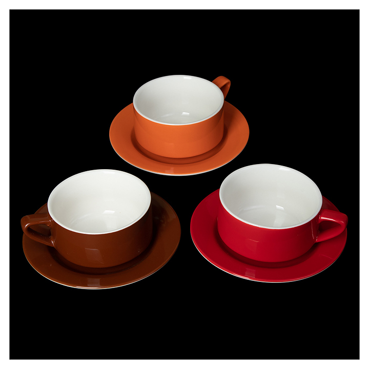 Чайная пара Corone Gusto 7926/7927 предназначена для подачи чая в процессе сервировки стола на предприятиях общественного питания, а также в домашних условиях. Серия отличается стильным дизайном и яркой цветовой палитрой в теплых тонах. Модель состоит из классического блюдца и чашки круглого сечения с рукояткой и прямым бортом. Возможность компактного штабелирования аналогичных моделей. Изделия выполнены из высококачественного фарфора, внешняя поверхность чашки и верх блюдца с красным покрытием, обратные поверхности белого цвета. Особенности: