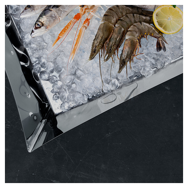 Блюдо для морепродуктов Luxstahl 460х290х90 мм (нерж. сталь) с дренажом прямоугольное