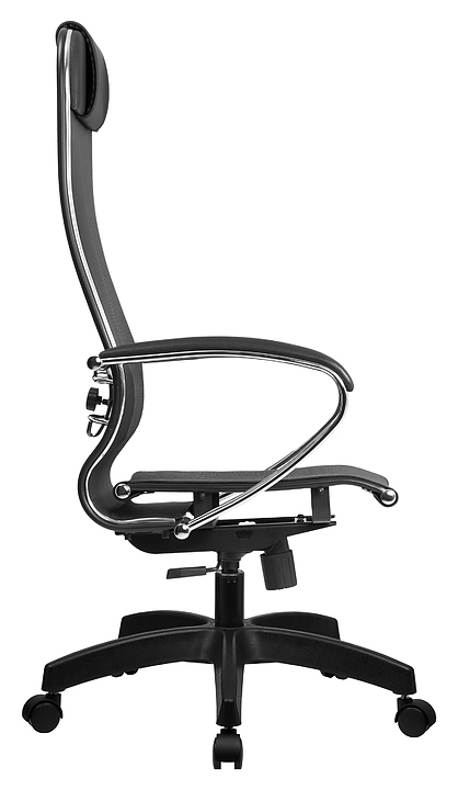 Кресло Метта Комплект 4 (MPRU)/подл.131/осн.001 предназначено для долгой работы за компьютером на даче, дома, а также в офисах. Модель оснащена высокой замкнутой сверху спинкой с мягким накладным подголовником и комфортным сиденьем. Обивка подголовника, спинки и сиденья выполнена из мелкой натяжной сетки, обивка подлокотников и подголовника - из экокожи, каркас подлокотников - из хромированной стали, газлифт - из стали с полимерным покрытием черного цвета, пятилучье с треугольным сечением - из полипропилена, ролики - из полиамида. Особенности:
