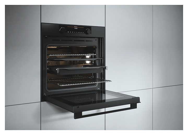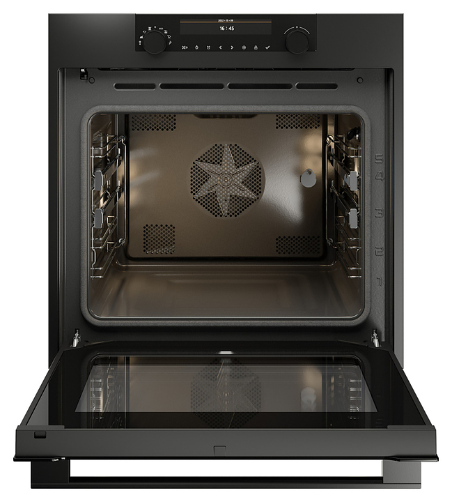 Электрический духовой шкаф ASKO OP8687A1 предназначен для приготовления большого ассортимента блюд в домашних условиях. Модель оснащена вместительной камерой с вентилятором в задней стенке, верхним и нижним нагревателями, верхним грилем, 2 съемными боковыми стойками с направляющими для противней, откидной дверью с прямоугольным смотровым окном и горизонтальной рукояткой, 4 фиксированными опорами, панелью управления с 2 поворотными переключателями, информативным сенсорным TFT дисплеем с символьными и цифровыми сегментами индикации. Корпус выполнен из металла с покрытием фронта оттенка графит, остекление двери – из стекла с накладками из нержавеющей стали. В комплект поставки входят решетка для гриля и 4 противня: 2 мелких эмалированных, глубокий эмалированный и мелкий стеклянный. Особенности: