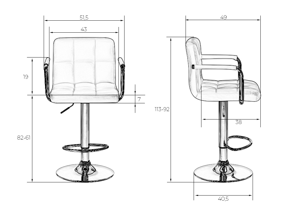 Барный стул DOBRIN 5011-LM KRUGER ARM предназначен для обустройства барной зоны в кухнях, столовых, гостиных, а также в кафе и ресторанах. Модель оснащена круглым основанием в виде диска, подлокотниками с чехлами, мягким вращающимся сиденьем квадратной формы, механизмом регулировки высоты газлифт, эргономичной мягкой спинкой, которая оказывает хорошую поддержку и подставкой для ног. Каркас изготовлен из фанеры, основание - из металла. Изделие выполнено в современном стиле, имеет удобную конструкцию и поставляется в разобранном виде. Простая сборка. Дополнительные характеристики: