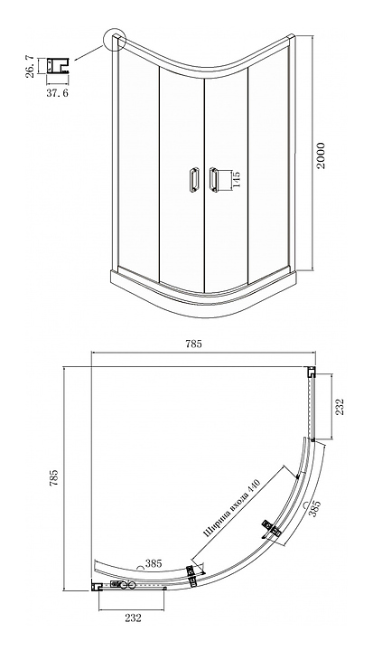 Универсальный душевой уголок Ambassador Kingston 14011106 предназначен для использования в ванных комнатах. Благодаря угловой конструкции в форме четверти круга изделие можно вписать даже в ванные комнаты небольшой площади. Модель оснащена 2 раздвижными дверцами на магните для герметичности. Водоотталкивающее покрытие EasyClean гарантирует длительную защиту от коррозии и водяных разводов. Полотно выполнено из прочного закаленного стекла, профиль - из алюминия, ролики - из стали. Дополнительные характеристики: