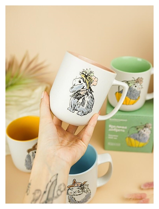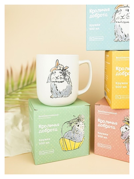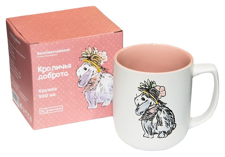 Кружка P.L. Proff Cuisine Кроличья доброта 500 мл (керамика) белая / розовая внутри