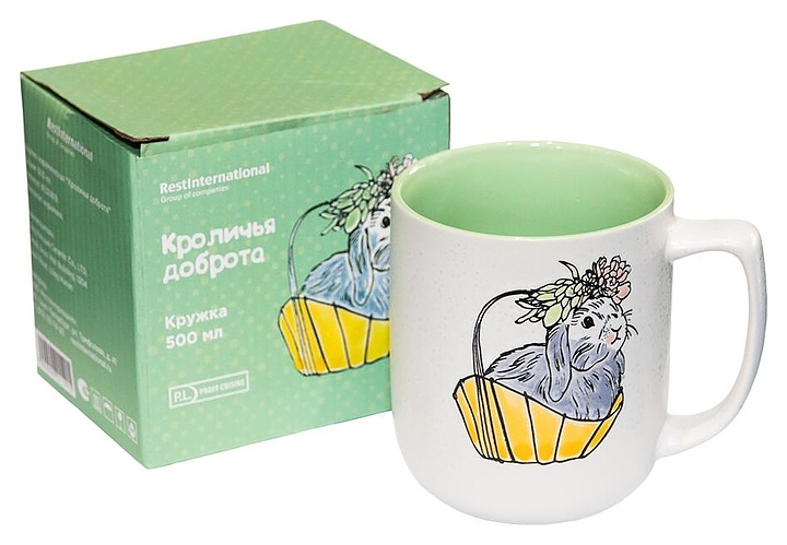 Кружка P.L. Proff Cuisine Кроличья доброта 500 мл (керамика) белая / зеленая внутри