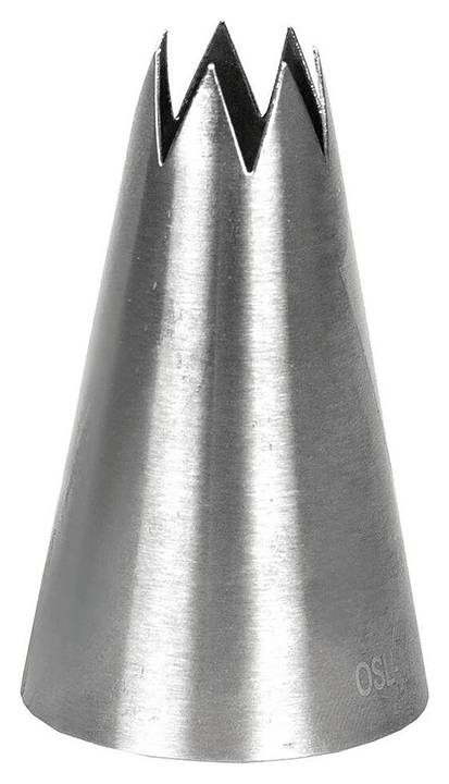 Насадка P.L. Proff Cuisine OSL-12 "Звезда" предназначена для установки на кондитерский мешок и получения фигурной массы с сечением в форме звездочки для декорирования кондитерских изделий на предприятиях пищевой промышленности, общественного питания и в домашних условиях. Модель конической формы оснащена выпускным отверстием с зубцами. Изделие выполнено из металла. Дополнительные характеристики: