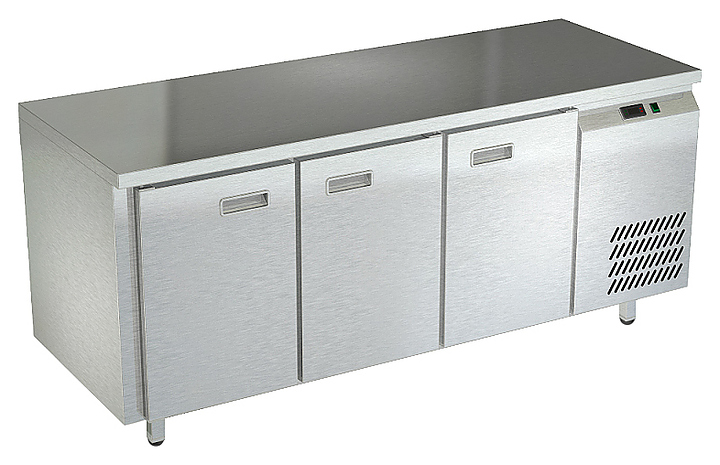 Морозильный стол Техно-ТТ СПБ/М-121/30-1807 предназначен для раскатки теста, обработки, заморозки и долговременного хранения продуктов, полуфабрикатов, напитков и мороженого на предприятиях общественного питания и торговли. Модель оснащена 3 секциями с 3 дверьми и регулируемой полкой-решеткой, петлями-доводчиками (Польша) и круглыми ножками, регулируемыми по высоте на 50 мм (Италия). Корпус и столешница выполнены из нержавеющей стали AISI 430, задняя стенка и дно - из оцинкованной стали. Стол поставляется в собранном виде. Особенности: