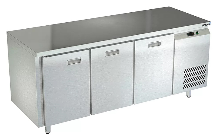 Морозильный стол Техно-ТТ СПБ/М-122/12-1807 предназначен для раскатки теста, обработки, заморозки и долговременного хранения продуктов, полуфабрикатов, напитков и мороженого на предприятиях общественного питания и торговли. Модель оснащена 1 секцией с дверью и регулируемой полкой-решеткой, 2 секциями с 2 ящиками, направляющими с доводчиками (Австрия), петлями-доводчиками (Польша) и круглыми ножками, регулируемыми по высоте на 50 мм (Италия). Корпус и столешница выполнены из нержавеющей стали AISI 430, задняя стенка и дно - из оцинкованной стали. Стол поставляется в собранном виде. Особенности: