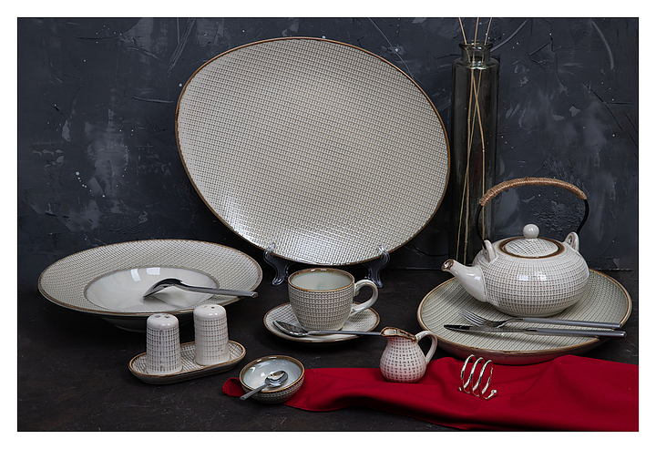 Чайник Corone Alveare HS146131 предназначена для профессионального использования в ресторанах. Модель имеет окантовку цвета теплой сепии и уникальный декор, схожий с текстурой холста для живописи. Посуда изготавливается из профессионального прочного фарфора цвета льняного семени. Особенности: