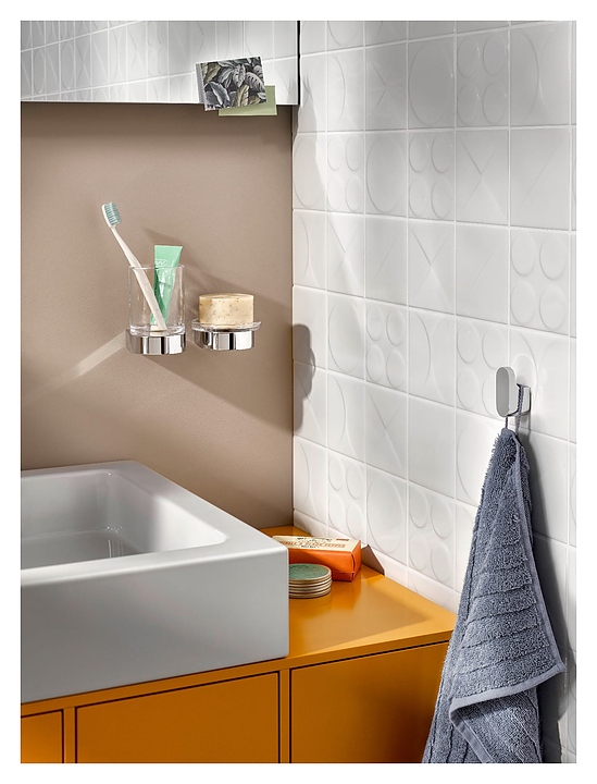 Держатель EMCO Flow предназначен для размещения зубных щеток в ванной комнате. Серию Flow отличают стильный и современный дизайн, благодаря чему она идеально впишется в любой интерьер. Модель монтируется на стену. Модель оснащена держателем и стаканом для зубных щеток, имеет скрытые крепления и монтируется на стену. Изделие выполнено из металла и матового стекла. Особенности: