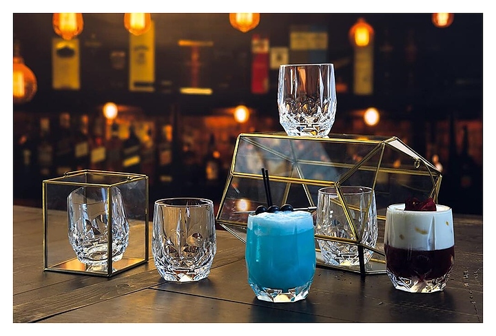 Стакан Олд Фэшн RCR Cristalleria Luxion Alkemist 27432020006 используется на предприятиях общественного питания и в домашних условиях для подачи виски со льдом и других напитков. Емкость оснащена выпуклым бортом с вдохновленным эстетикой Нового Света 30-х годов декором и стилизованной под резьбу по камню функциональной огранкой, позволяющей сохранять устойчивость сосуда в наклонном положении. Изделие выполнено из высококачественного хрустального стекла Luxion. Особенности: